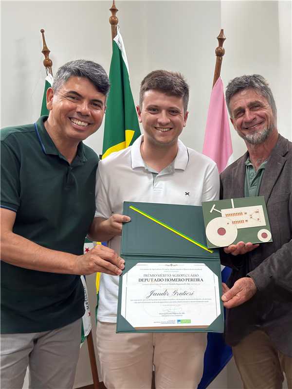 23 de dezembro de 2025Capital Nacional do Inhame tem produtor reconhecido em BrasíliaNa tarde de hoje (22), o prefeito Hugo Luiz recebeu o rei do inhame, Jandir Gratieri, e o deputado Messias Donato para celebrar o prêmio de […]